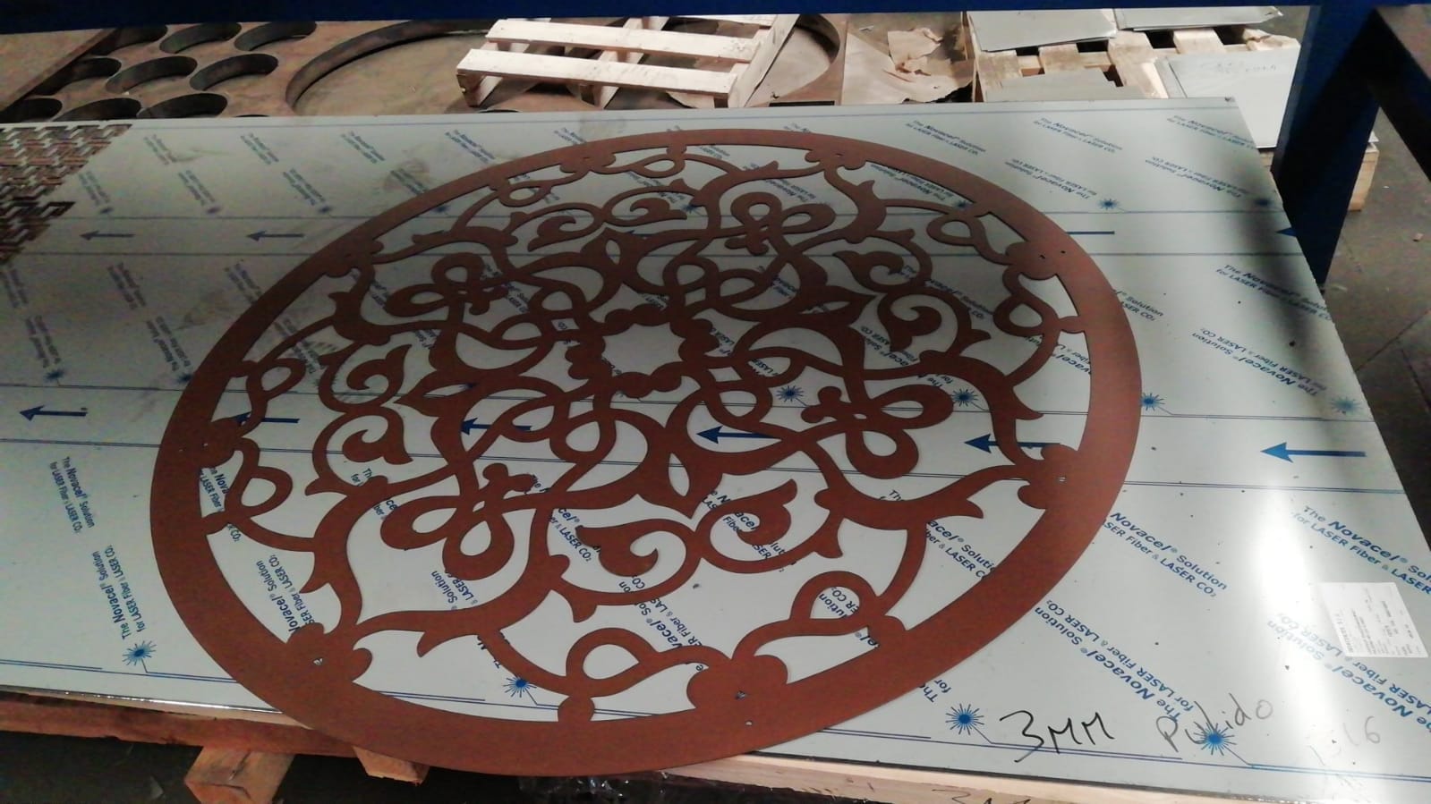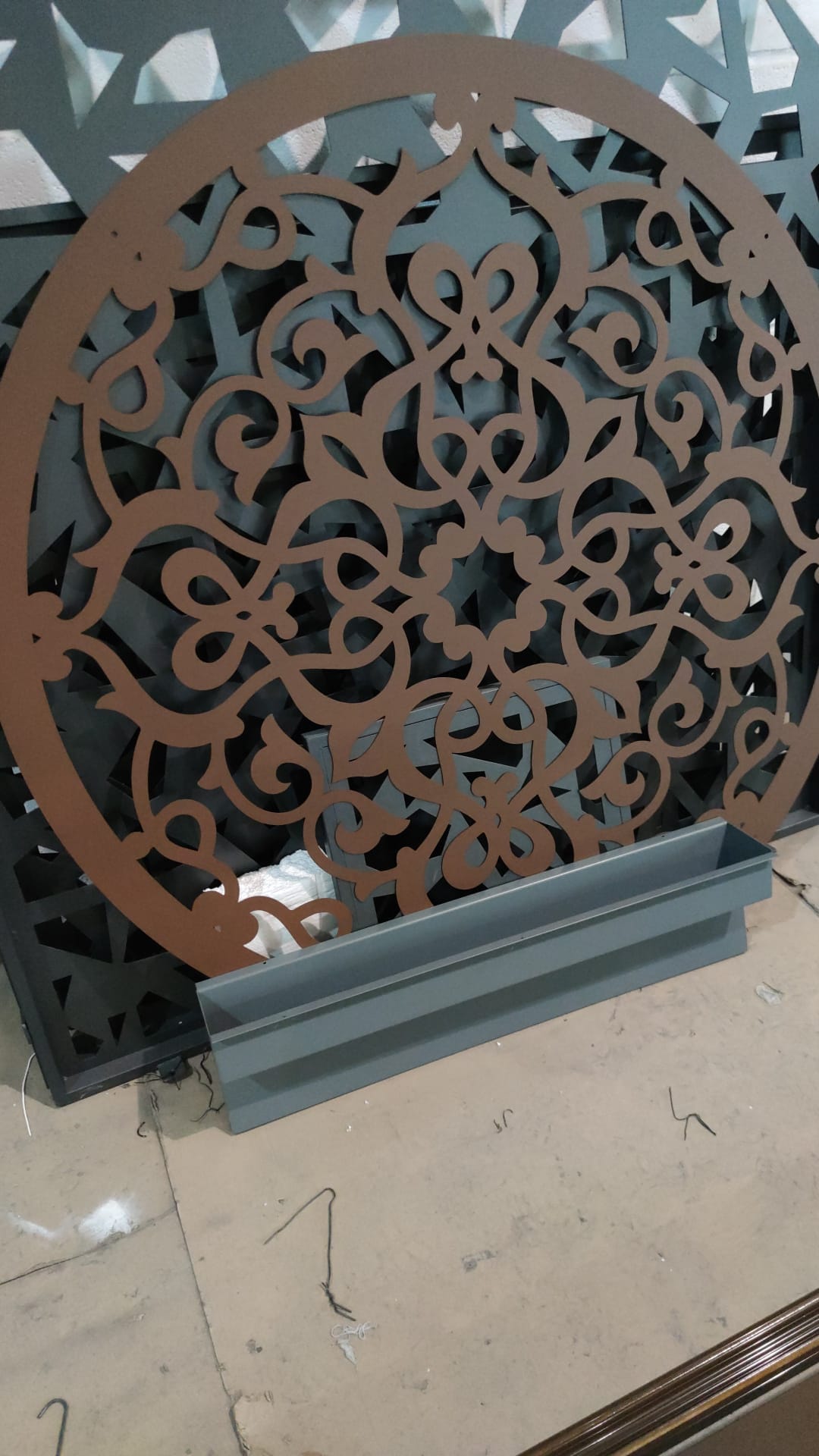 En DyM Diseño y Metal, somos expertos en corte láser premium que transforma tus ideas en realidad. Nuestro panel decorativo circular, con un diseño arabesco intrincado y patrones geométricos complementarios, es el toque final para cualquier espacio.