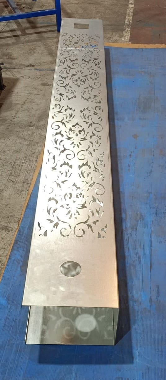 El panel decorativo lineal calado es un ejemplo de la perfección alcanzada con el corte láser en acero galvanizado. Su diseño intrincado y elaborado, caracterizado por patrones orgánicos y florales, lo convierte en un elemento distintivo para cualquier espacio arquitectónico o de interiorismo.