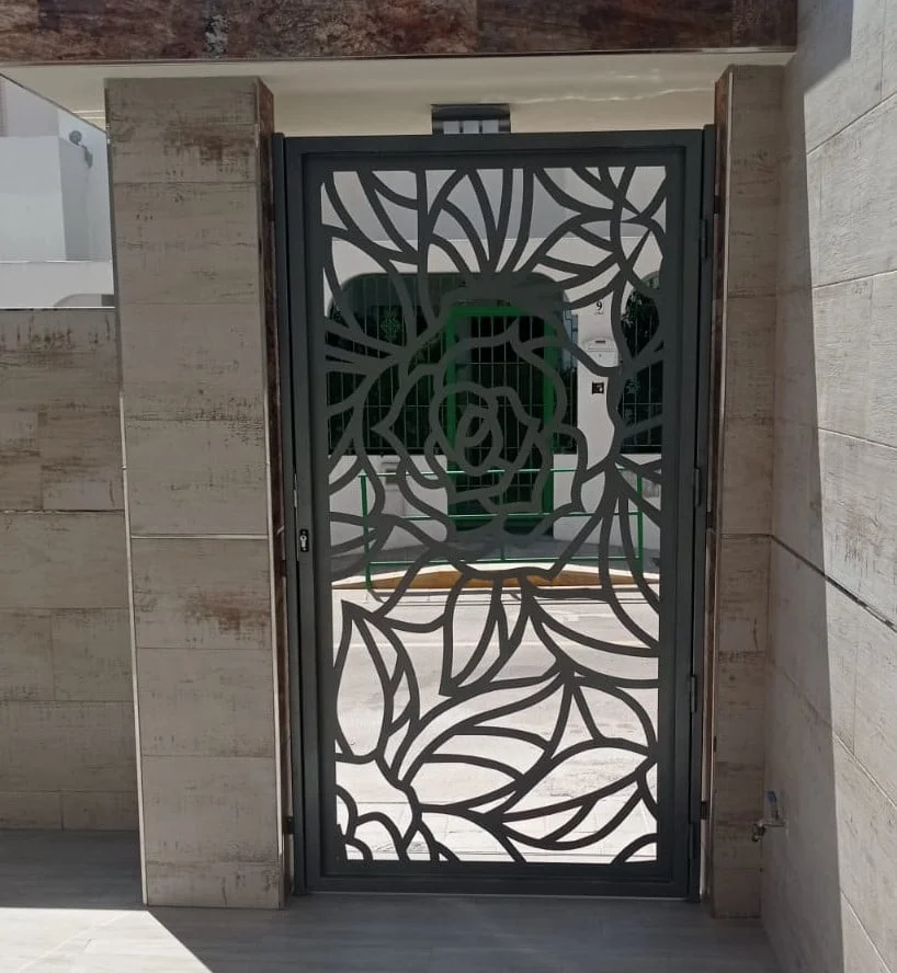 Ofrecemos soluciones de seguridad elegantes con rejas diseñadas y cortadas con láser para resguardar la entrada principal de tu hogar u oficina.